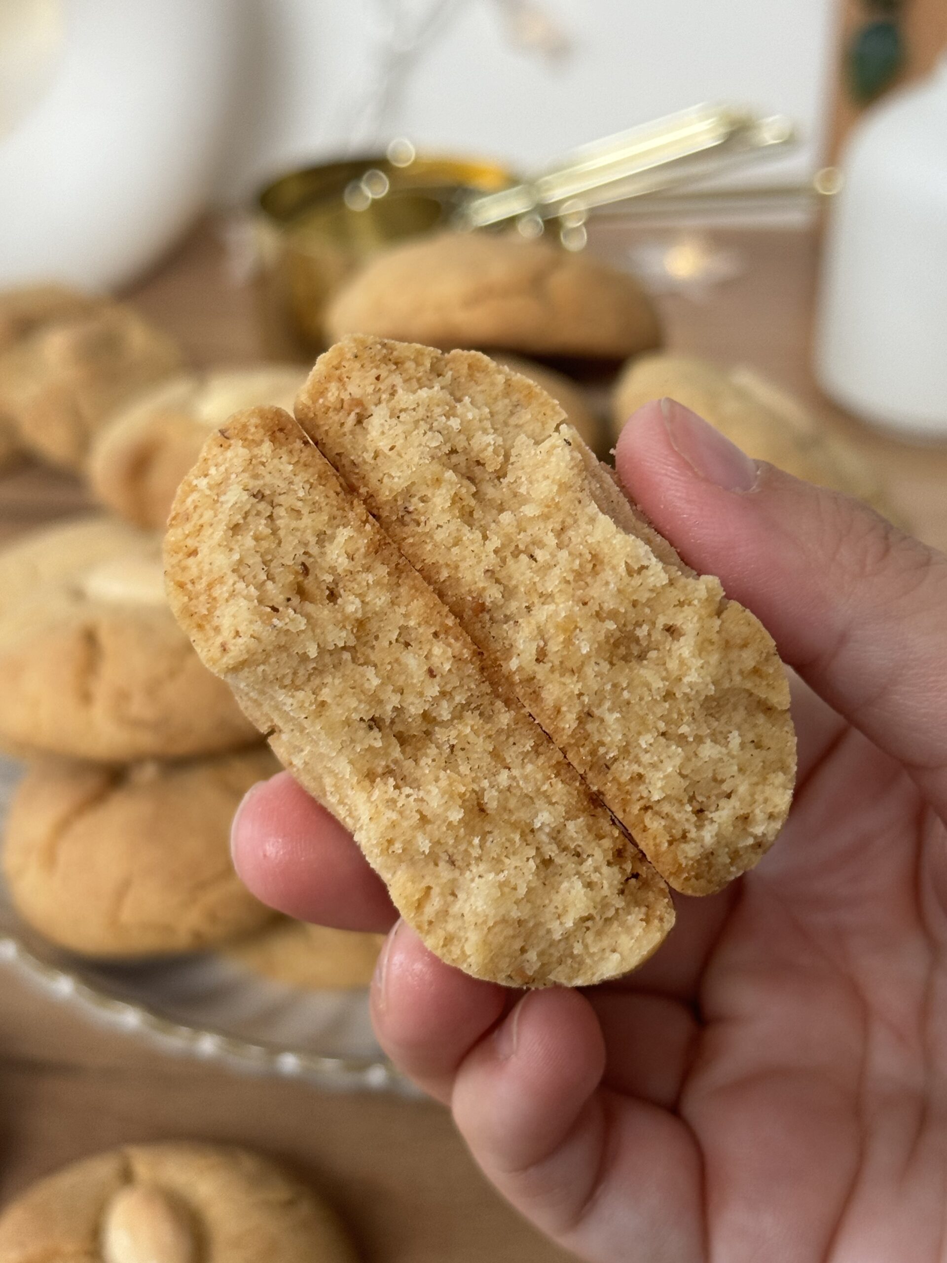 ∙Ne pas surcuire ! Les ghriba doivent rester très pâles sur le dessus à la sortie du four. Elles peuvent sembler encore molles — c’est tout à fait normal, elles durcissent en refroidissant et prennent leur texture fondante caractéristique.